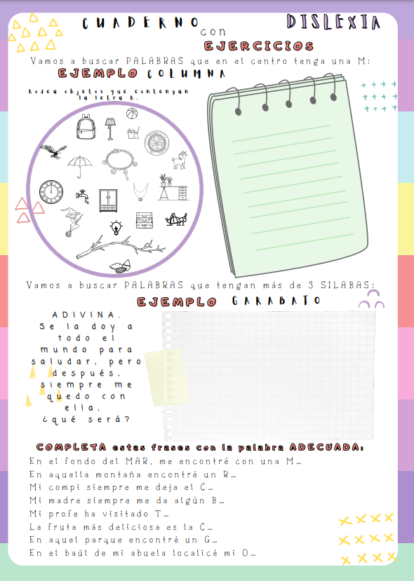Cuaderno con ejercicios para dislexia